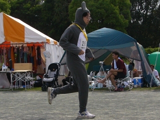 それじゃぁ、私たちの目の前に現れた仮装ランナーの一部を紹介しよう。まずは、比較的おとなしめの仮装。ワンポイントで仮装効果を出している。走るのにはあまり影響しない・・・と思うけど。これは、バニーかな?