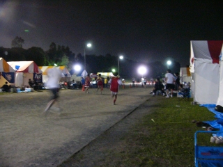 アーチをくぐって1周終了。距離にして1.2km程度。短いかなと思わなくもないけど、リレーと言う性格上1周があまり長すぎるとこれはこれで難しい。私の参加したチームは一人持ち時間30分程度で回すことにする。だいたい5周が目安だけど、長く走った方が周りに感謝されると言われたし、私は翌日早めに失礼することにしているので、ちょっと多めに走ることにする。